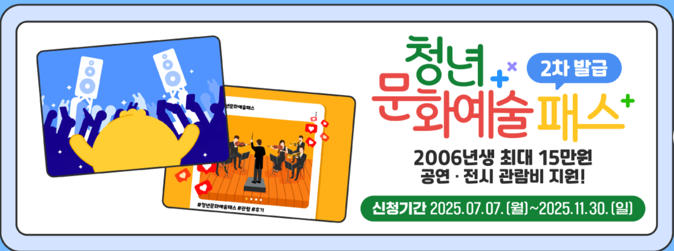 지금 청년 문화예술패스를 신청하면 단 한 번의 클릭으로 2025년 하반기 내내 공연 할인 혜택을 누릴 수 있습니다.