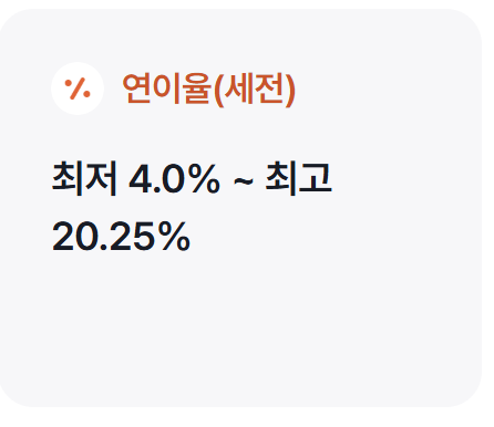 | 최종 적용금리 | 최대 연 20.25% (세전) |