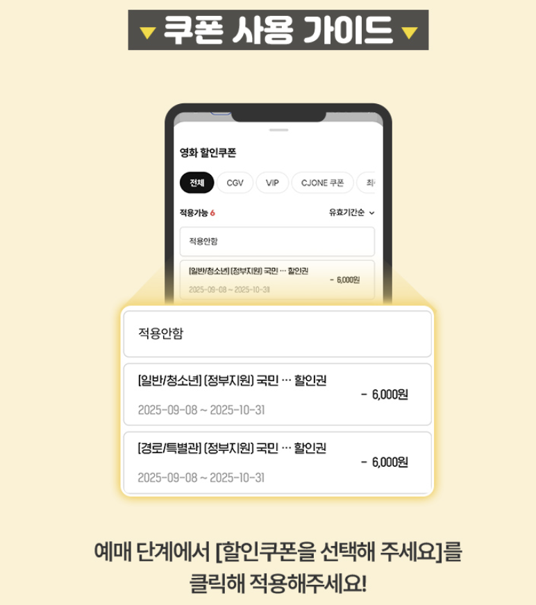 적용 대상: CGV, 롯데시네마, 메가박스 등 전국 주요 멀티플렉스, 독립·예술 영화관 일부
