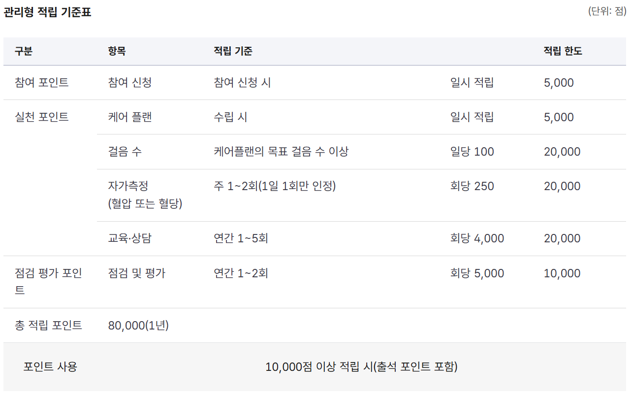 관리형 참여자는 1년간 최대 8만 점 적립 가능